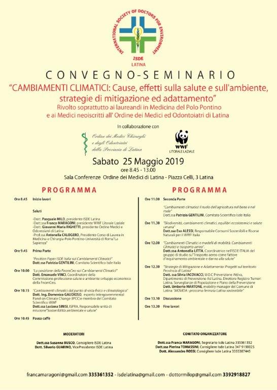 Con l’occasione l’ISDE di Latina E L’ISDE NAZIONALE ricorda a tutti i medici di Medicina generale la costituzione a livello nazionale dei Medici Sentinella per la salvaguardia ambientale e di conseguenza la tutela della salute dei cittadini. (Art. 5 del Codice di Deontologia MEdica).